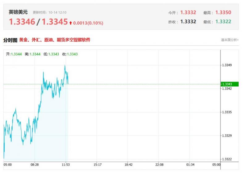 截至目前,英镑/美元上涨0.10%,报1.3345。