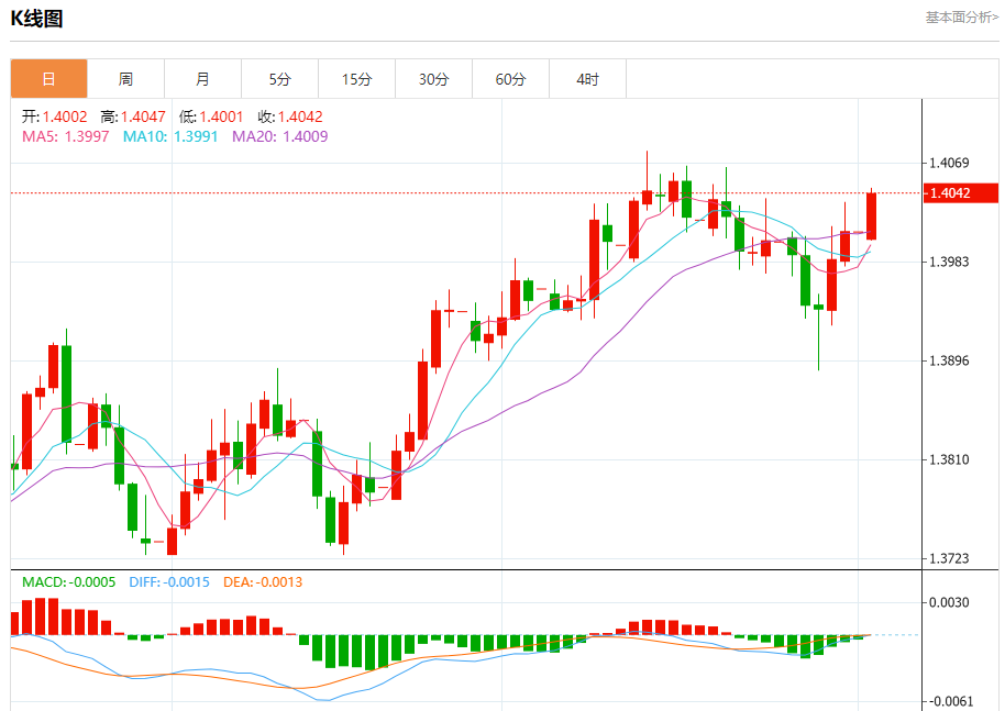 截至目前,美元/加元上涨0.23%,报1.4043。