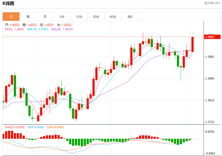 截至目前,美元/加元上涨0.38%,报1.4064。