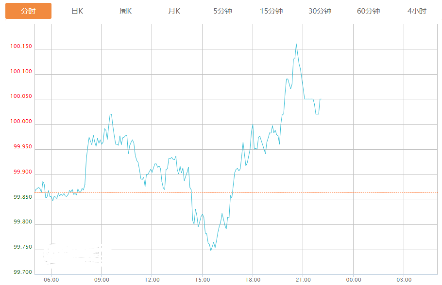 截至目前,美元指数上涨0.19%,报100.050。