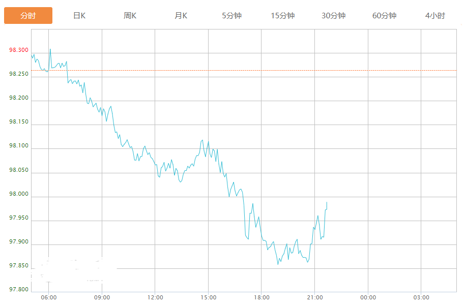 截至目前,美元指数下跌0.30%,报97.962。