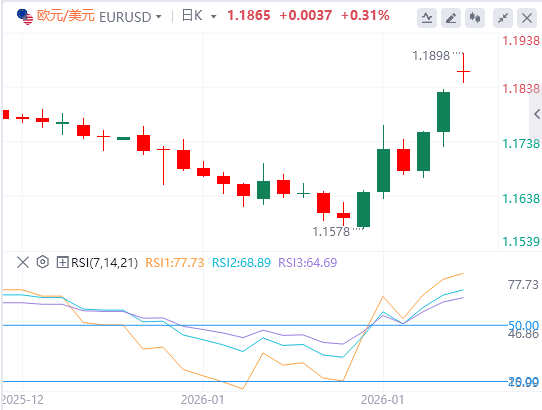 近期欧元兑美元汇率回落,美元收复日内跌幅,主要受风险厌恶情绪驱动。贸易与地缘政治紧张局势加剧市场波动:美国总统特朗普威胁对加拿大商品加征100%关税(若渥太华与中国达成贸易协议),而加拿大总理卡尼明确表示无此计划;同时,美国航母打击群向中东方向移动,加剧与伊朗的紧张局势,进一步推升避险需求。