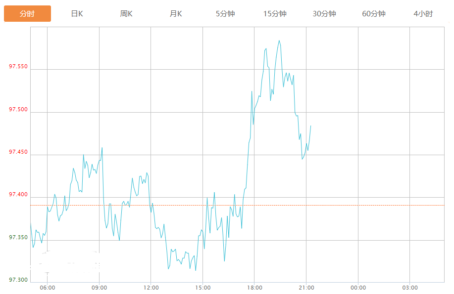 截至目前,美元指数上涨0.08%,报97.462。