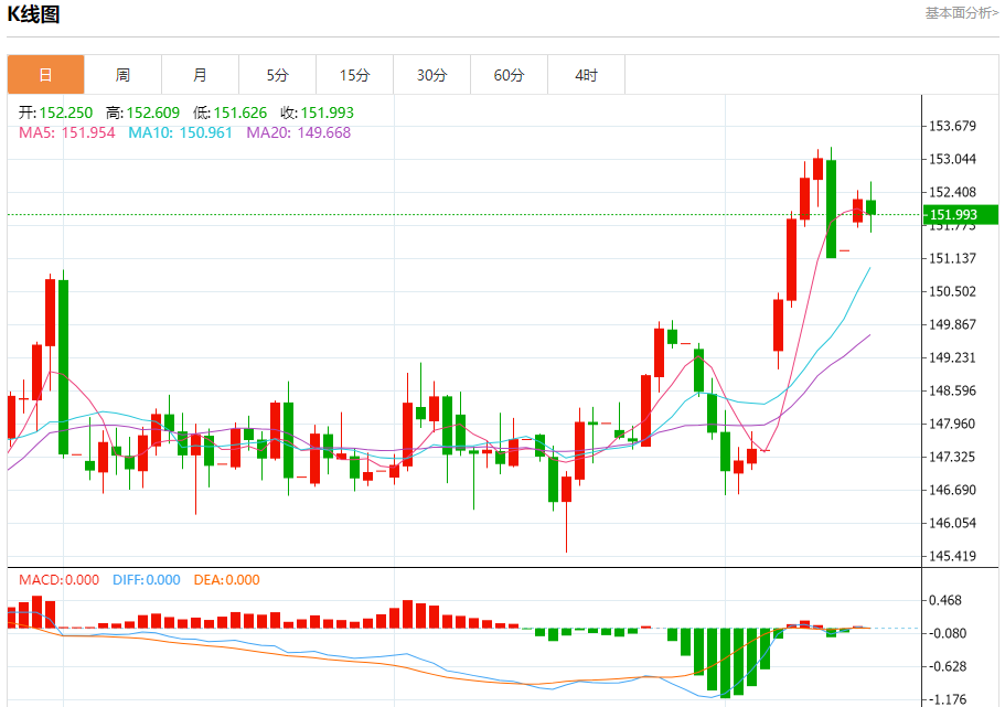 周二盘中,美元/日元报152.005,跌幅0.18%。