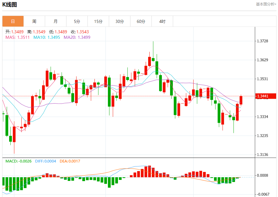 周四盘中,英镑/美元报1.3454,涨幅0.39%。