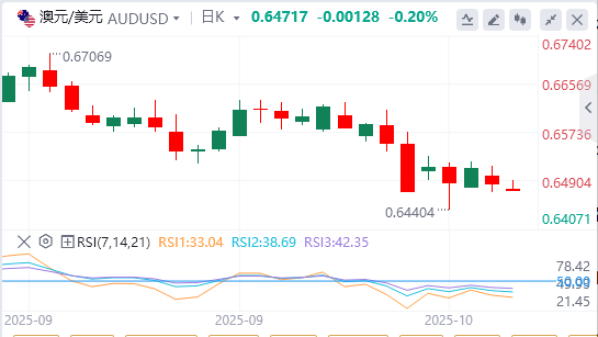 周五澳元/美元交投于0.6480附近。日线图上的技术分析表明,由于该货币对在下降通道模式内移动,因此存在持续的看跌倾向。此外,14天相对强弱指数(RSI)仍低于50水平,强化了看跌倾向。