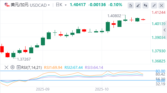 对贸易紧张局势和美国政府持续关门的担忧拖累美元兑加元走低。美国总统唐纳德·特朗普开始与中国发动贸易战,引发了人们对经济长期影响的担忧,尽管美国财政部长斯科特·贝森特建议在进一步提高关税之前延长休战时间。