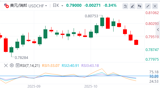 再加上中美贸易紧张局势升级带来的经济风险,对美元和美元/瑞郎货币对施加了下行压力。在美国总统唐纳德·特朗普威胁要将中国商品的关税提高到100%以及中国加强对稀土出口的限制之后,中美关系出现紧张的迹象。此外,两国本周早些时候宣布了针锋相对的港口费,加剧了人们对世界两个最大经济体之间全面贸易战的担忧。
