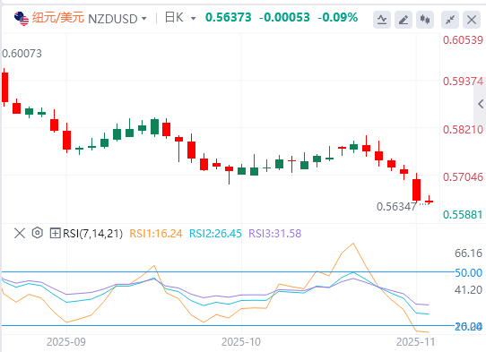 新西兰储备银行(RBNZ)自去年8月以来已将官方现金利率(OCR)下调300个基点(bps)至2.5%,大多数经济学家预计在11月26日的年内最后一次会议上将再上调25个基点。新西兰联储的鸽派立场可能会在短期内拖累新西兰元兑美元走低。