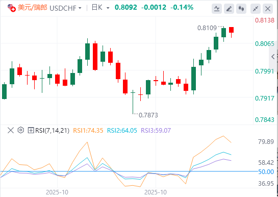 瑞士法郎(CHF)受到全球风险资产抛售推动的避险需求增加的支撑。由于对人工智能估值过高的担忧加剧,全球股票和其他风险资产承压。在华尔街主要银行首席执行官警告市场可能出现调整后,避险情绪加剧。