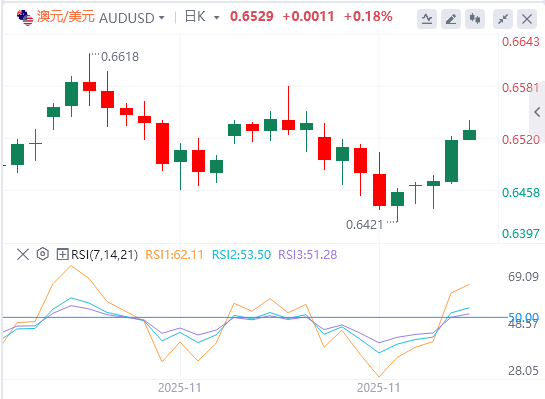 澳元也表现强劲,受RBA前景预期转变的鼓舞。一些经济学家改变了看法,现在认为下一步行动实际上可能是加息而非降息。NAB表示,如果经济增长加速且劳动力市场趋紧,2026年上半年就有可能加息。还有一些人持更鹰派的观点,预计明年五月和八月都会加息。