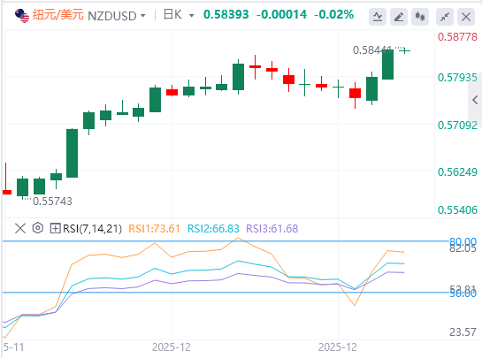然而,意外的GDP突破对市场对美联储进一步政策宽松的预期影响甚微。事实上,交易员仍在预计2026年还会有两次降息,原因是消费者通胀放软和美国劳动力市场降温的迹象。此外,美国总统唐纳德·特朗普宣称,任何竞选美联储主席的候选人都必须承诺即使经济表现良好,也必须降低利率。这使美元保持压低,支持纽元/美元对。