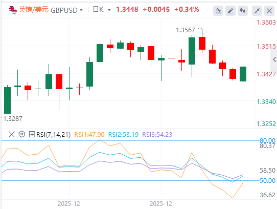 英镑/美元目前上涨,约在1.3465。20日指数移动平均线(EMA)上涨至1.3438,价格略高于其上方,支撑出看涨基调。