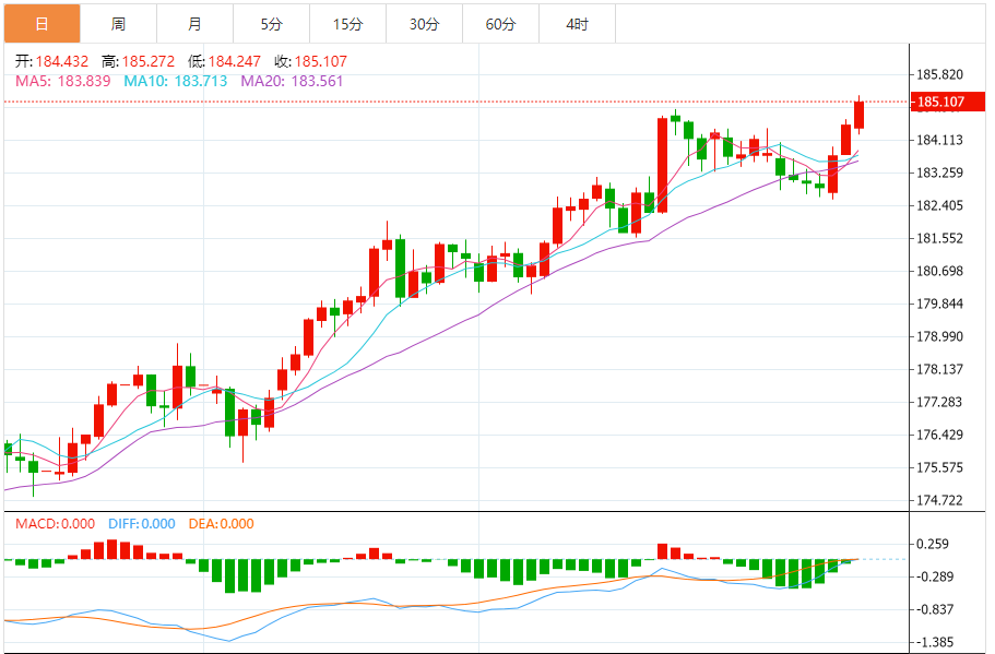 在看涨通道的支撑之上提供一个新的收盘价,需要通过超过185.40的水平来激活主要指标的积极性,并通过向185.65和185.95的反弹开始瞄准新的看涨站。