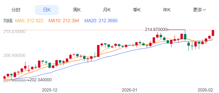 看涨通道支撑上方的稳定性将提供记录额外收益的强大机会;预计在214.90水平形成初始目标并超过该水平可能会延长近期交易至215.55和216.35。