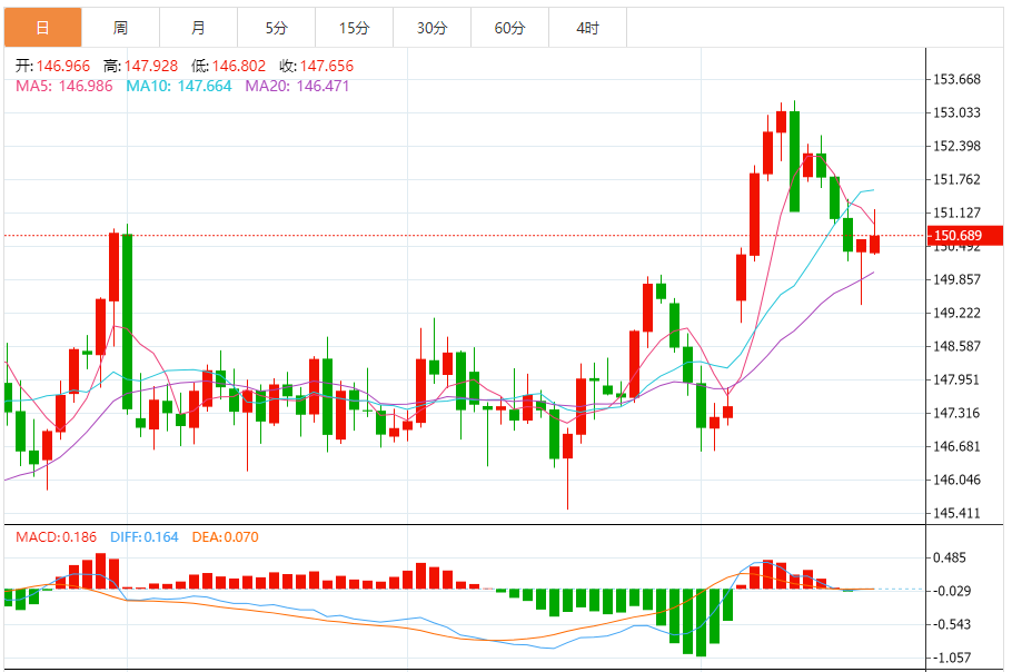 周一(10月20日),美元/日元上涨150.686,暂报150.653,涨幅0.02%。