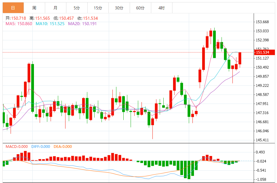 周二(10月21日),美元/日元上涨151.569,暂报151.555,涨幅0.55%。