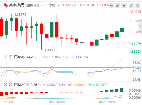 10月22日,周三欧市初盘,英镑/美元连续第四个交易日走低,周三亚洲时段交投于1.3380附近。该货币对在英国(UK)消费者物价指数(CPI)和9月零售物价指数数据公布前面临挑战。