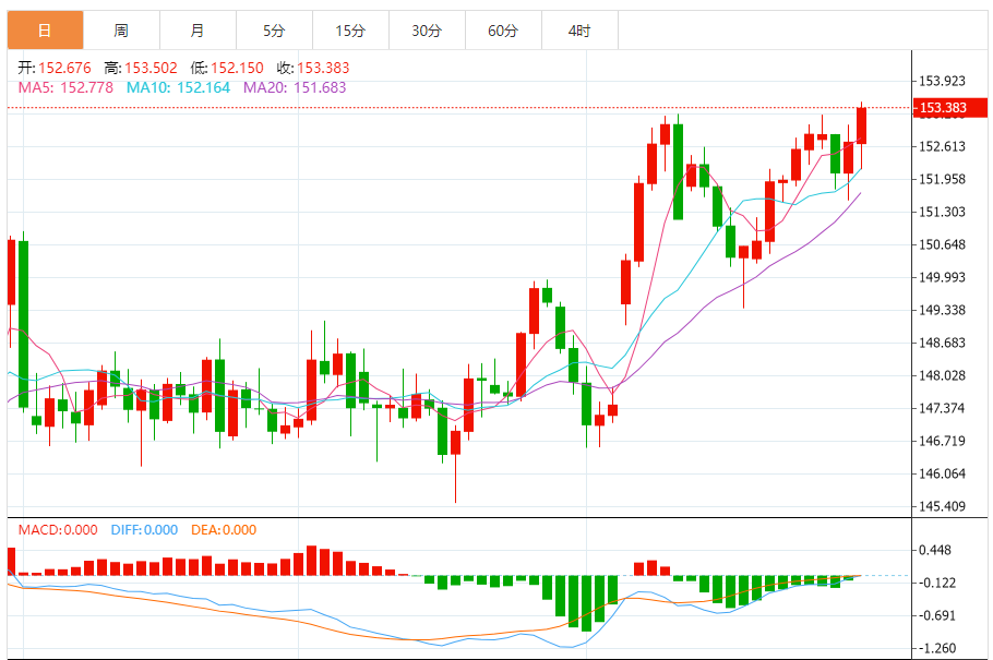 周四(10月30日),美元/日元上涨153.363,暂报153.342,涨幅0.42%。