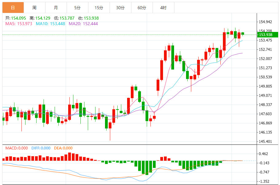 周四(11月6日),美元/日元下跌153.967,暂报153.939,跌幅0.10%。