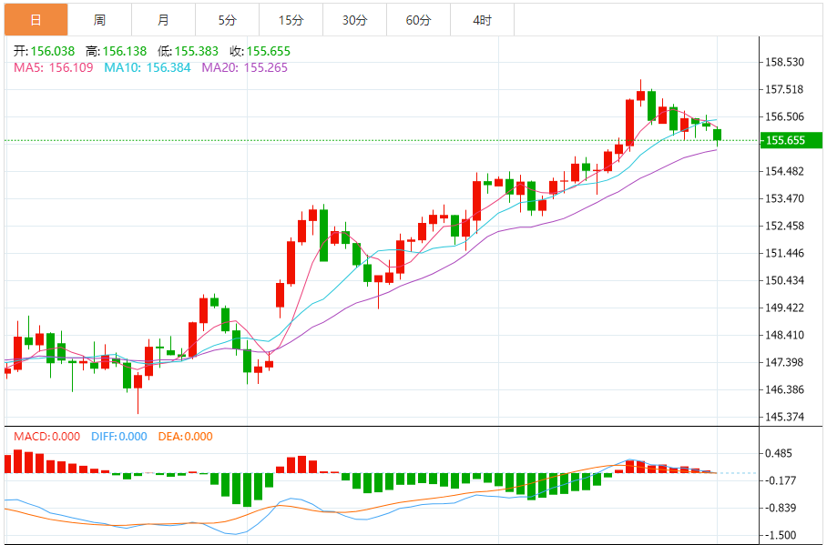 支撑位:155.25 155.33 155.46