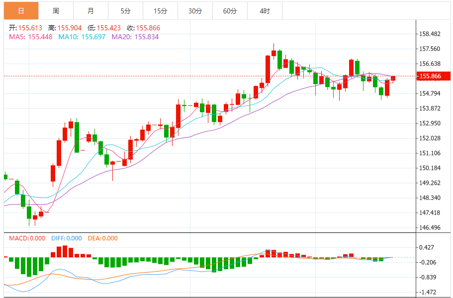 周四(12月18日),美元/日元上涨155.864,暂报155.854,涨幅0.14%。