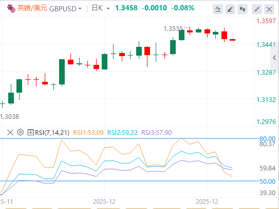 若突破九日均线1.3462反弹,英镑兑美元将目标12月24日达到的三个月高点1.3534。若日收盘价突破1.3534,可能开启向上升通道约1.3690上线的上涨。