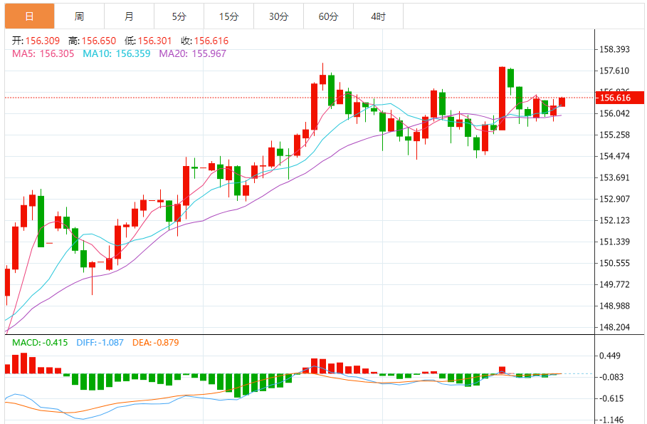 周三(12月31日),美元/日元上涨156.633,暂报156.605,涨幅0.15%。