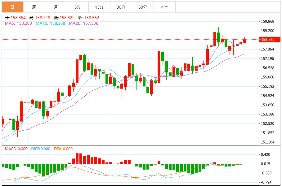 100小时简单移动平均线(SMA)微升至158.16,美元兑日元维持在上方,保持短期看涨基调。移动平均收敛背离线(MACD)线位于信号线下方,约在零点附近,带有一个小的负直方图,强化了谨慎的动量背景。相对强弱指数(RSI)显示56,略高于中线,显示买盘关注度稳定。从157.35开始的上升通道支撑上升趋势,阻力位在158.91附近。决定性的突破可能会扩大涨势。
