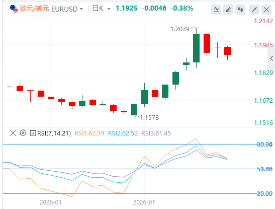 美元指数(DXY)本周自四年低点企稳回升,成为欧元承压的宏观驱动因素。欧洲央行官员近期频繁释放对欧元过快升值的担忧信号,进一步加剧欧元/美元下行压力——近期欧元兑美元汇率快速攀升已引发欧银对出口竞争力及通胀预期的警惕。