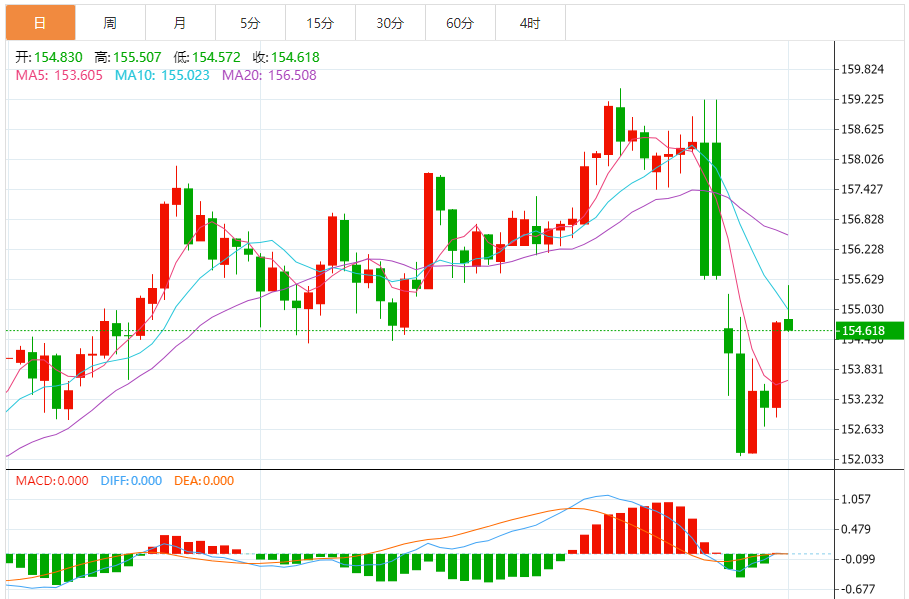 周一(2月2日),美元/日元下跌154.627,暂报154.617,跌幅0.10%。