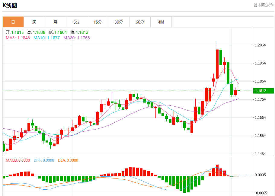 汇价高见1.1837,低见1.1804。上一交易日,汇价收于1.1816。