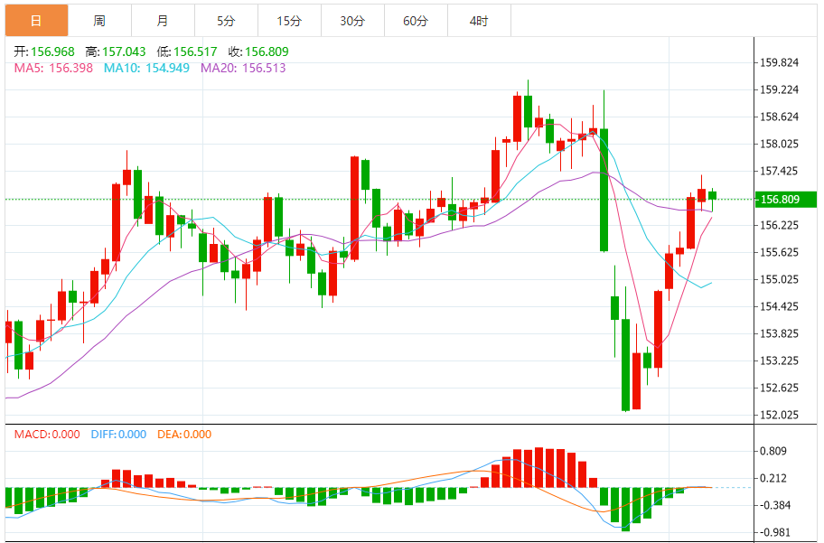 支撑位:156.49 156.56 156.61