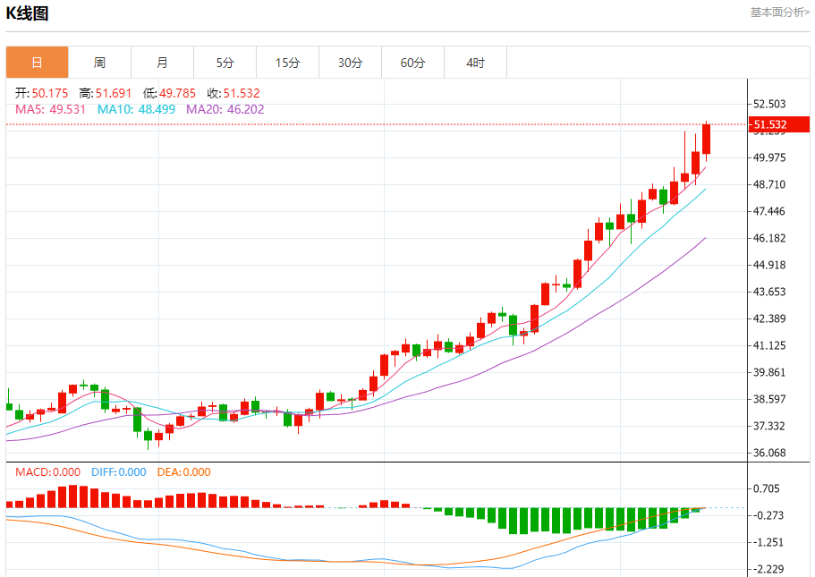 ÏÖ»õ°×Òø£º½ØÖ¹±±¾©Ê±¼ä20£º23£¬ÏÖ»õ°×ÒøÉÏÕÇ£¬ÏÖ±¨51.530£¬ÕÇ·ù2.51%¡£Å¦ÊÐÅÌǰ£¬£¨°×Òø£©¼Û¸ñÔÚ×îºóÒ»¸ö½»Ò×ÈÕµÄˮƽÉϲ¨¶¯½»Ò×£¬ÊÔͼ»ñµÃ¿´ÕÇÊÆÍ·£¬ÒÔÖ§³Ö¶ÌÆÚÖ÷Òª¿´ÕÇÇ÷ÊÆµÄÎȶ¨ÐÔ¼°ÆäÑØÇ÷ÊÆÏß½»Ò×£¬³ýÁËÏà¶ÔÇ¿¶ÈÖ¸±êÉϳöÏÖ»ý¼«ÐźÅÍ⣬À´×ÔEMA50ÉÏ·½½»Ò׵Ļý¼«Ñ¹Á¦ÈÔÔÚ¼ÌÐø¡£