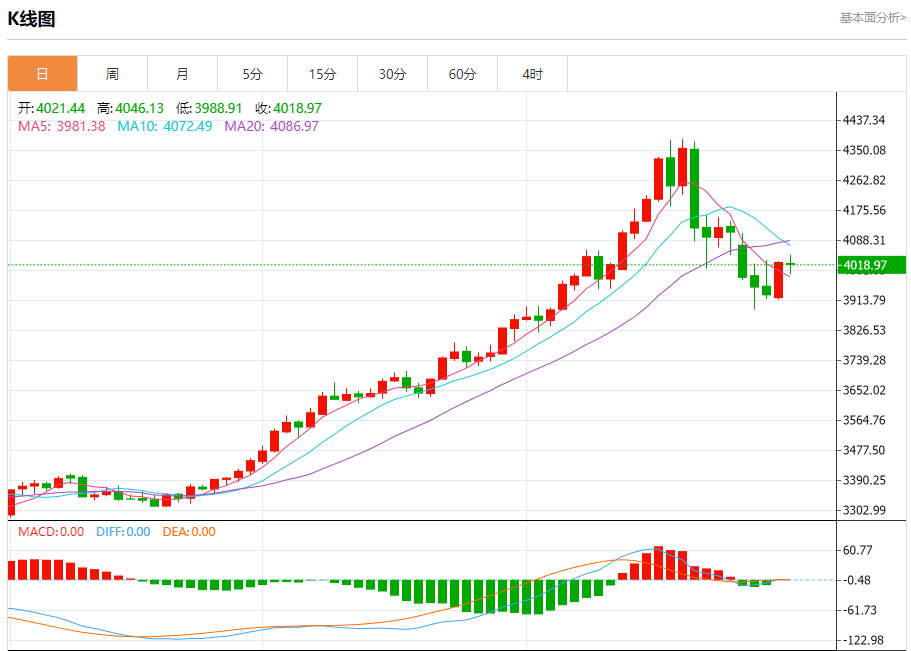 现货黄金:截止北京时间20:23,现货黄金下跌,现报4018.98,跌幅0.13%。纽市盘前,在上一交易日内,(黄金)价格下跌,由于价格低于EMA50,负面压力持续,这加强了短期内看跌修正趋势的稳定性。此外,在达到超买水平后,相对强弱指标出现了负面信号。