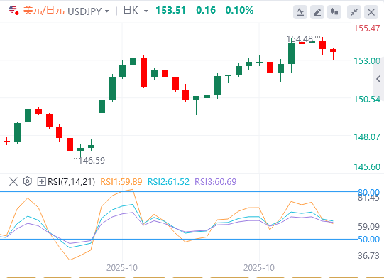 美元/日元在周二收于负值区域后延续跌势,周三亚洲时段短暂跌破153.00。该货币对随后出现反弹,当天最后一次持平交易于153.50附近。