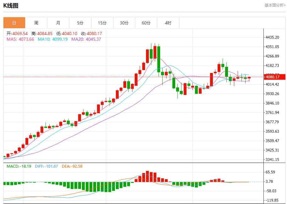 现货黄金:截止北京时间21:20,现货黄金上涨,现报4080.49,涨幅0.36%。纽市盘前,(黄金)价格在最后一个交易日上涨,利用了其在短期基础上沿着次要看涨趋势线交易所代表的动态支撑,尽管如此,价格仍处于负面压力下,因为其交易低于EMA50,并伴随着相对强度指标上负面信号的出现。