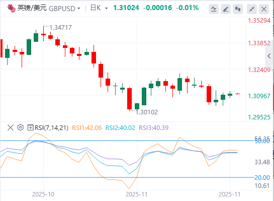 英镑:截至发稿,英镑/美元徘徊在1.3102附近。市场普遍希望美联储(Fed)在12月实现第三次连续降息,周一保持较高。根据芝加哥市场交易所FedWatch工具,利率交易者预计12月10日利率降至25个基点,概率接近80%。不过,仍有很大的余地,超过98%的概率是如果12月降息未能实现,美联储将在1月28日前再次降息。技术面上,如果这次尝试成功,英镑/美元将向最近的阻力位移动,该阻力位位于1.3145至1.3160区间。