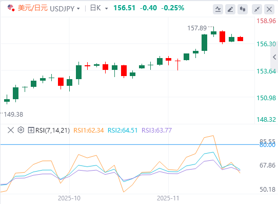 美元兑日元周一略有上涨,但未能形成多头势头。该货币对周二早些时候仍处于157.00以下,保持低区。