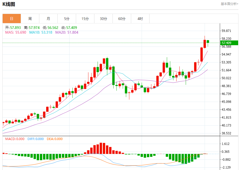 原油市场:截止北京时间21:20,美油下跌,现报59.130,跌幅0.32%。纽市盘前,(原油)价格在最后一个交易日下跌,原因是其试图获得复苏所需的看涨动力,由于其交易位于EMA50上方,受到短期基础上形成的积极技术形态(双底模式)的影响,以及相对强度指标上出现积极的重叠信号,在卸载其超买条件后,为在未来一段时间内实现更多收益开辟了道路。