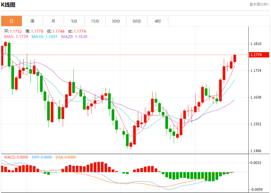 欧元/美元:截止北京时间21:20,欧元/美元上涨,现报1.1774,涨幅0.17%。纽市盘前,(欧元兑美元)价格在最后一个交易日艰难上涨,试图退出波动的交易区域,以帮助其在即将到来的时期恢复强劲的涨势,特别是在短期内沿着较小的看涨趋势线交易,相对强度指标出现积极信号,在卸载其超买条件后,为扩大涨势开辟了道路。