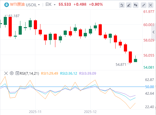 12月17日,北京时间周三亚市早盘,美元指数徘徊在98.21附近。周二,由于非农数据喜忧参半,美元指数在美盘中一度跳水跌破98关口,但随后收复大部分失地,最终收跌0.06%,报98.21;基准的10年期美债收益率最终收报4.145%,对美联储政策利率敏感的2年期美债收益率收报3.500%。现货黄金盘中一度重回4330美元上方,但未能站稳此处,再次回至4300大关附近震荡,最终收跌0.07%,报4302.36美元/盎司;现货白银在亚盘大跌后小幅反弹,最终收跌0.54%,报63.72美元/盎司。因供应过剩的忧虑仍在持续,而且俄罗斯与乌克兰达成和平协议的前景似乎有所加强,油价持续下行。WTI原油盘中一度失守55美元,最终收跌2.59%,报55.03美元/桶;布伦特原油最终收跌2.61%,报59.05美元/桶。WTI原油期货近4年来首次跌破55美元/桶。