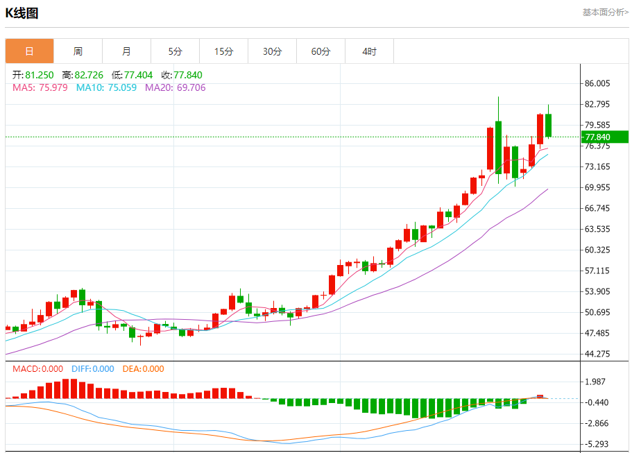 现货白银:截止北京时间21:20,现货白银下跌,现报77.961,跌幅4.02%。纽市盘前,由于支撑稳定在78.10美元,白银价格在盘中的最后一个交易中上涨,在卸载相对强度指标上的超买条件后获得了一些看涨动力,与价格走势相比,现在进入了夸大的超卖水平,表明在短期主要看涨趋势占主导地位的情况下,看跌动力正在消退,其交易沿着该趋势的支撑趋势线进行。