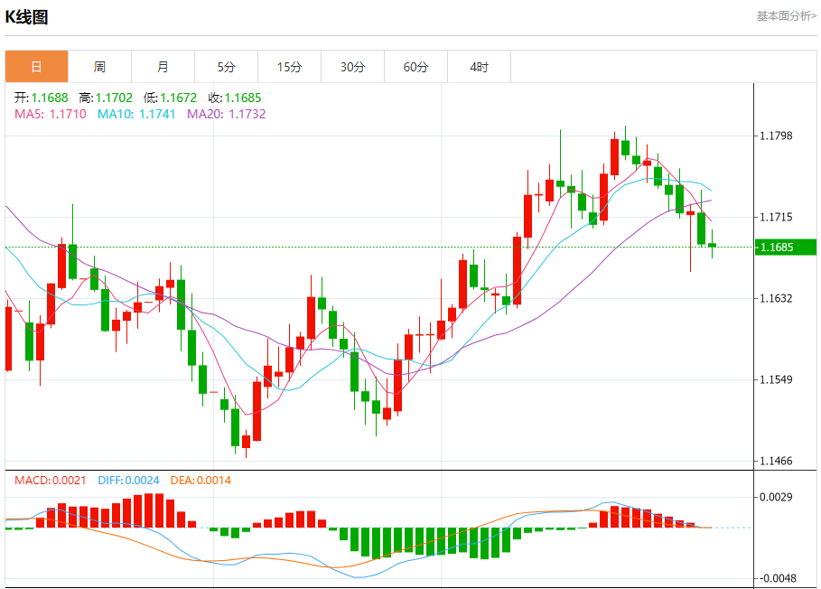 欧元/美元:截止北京时间21:20,欧元/美元下跌,现报1.1686,跌幅0.03%。纽市盘前,(欧元兑美元)的价格在最后一个交易日下跌,试图寻找上涨的低点,以此作为基础,可能有助于其获得复苏所需的看涨动力,在短期基础上沿着趋势线交易,随着相对强度指标上积极信号的出现,在达到超卖水平后,另一方面,由于其交易低于EMA50,这对货币仍处于负面压力下,这可能会阻碍近期的复苏尝试。