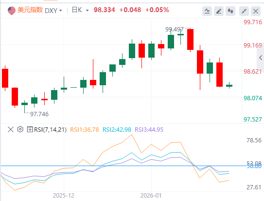 周四,特朗普的格陵兰立场逆转后,美元指数全日下行,截至目前,美元报价98.33。