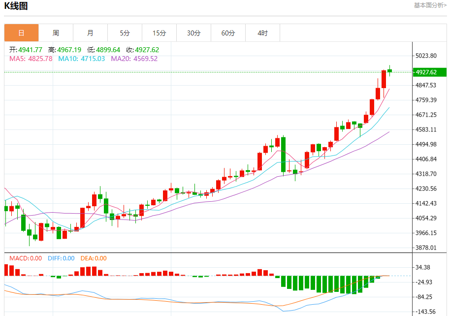 现货黄金:截止北京时间21:20,现货黄金下跌,现报4927.25,跌幅0.18%。纽市盘前,黄金价格在最后一个交易日下跌,逼近5000美元的历史阻力阈值,在此前连续上涨后出现自然的获利回吐波,并试图在相对强势指标上摆脱一些明显的超买状况,特别是随着来自那里的负面信号的出现,在短期主要看涨趋势占主导地位的情况下,积聚了可能有助于恢复上涨并创下历史新高的看涨势头。
