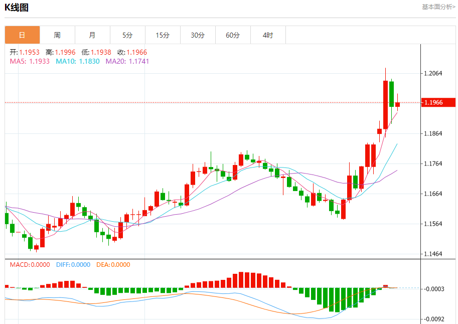欧元/美元:截止北京时间21:20,欧元/美元上涨,现报1.1968,涨幅0.11%。纽市盘前,欧元兑美元的价格在最后一个交易日下跌,以获得看涨势头,帮助其恢复并再次上涨,主要看涨趋势在短期基础上占主导地位,其交易与该趋势的支持趋势线一致,由于其交易高于EMA50,除了在达到超卖水平后从相对强度指标出现积极信号外,积极支持还在继续。