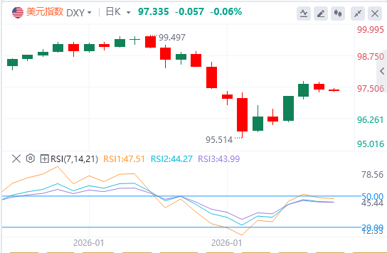 周二,美元指数震荡下行,盘中虽有反弹,但随后迅速回吐全部涨幅,截至目前,美元报价97.33。