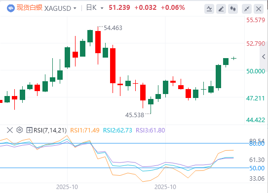从波浪来看,白银当前处于自下方46.80一线开启上行的3-4浪回踩,可尝试3-5浪上行跟进,整体处于加速三浪阶段。从形态来看,白银有构造大圆弧底的迹象。从下方MACD指标来看,多头量能明显多于空头量能。操作上建议逢低布局多单思路为主。