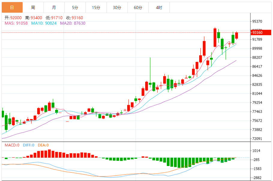 今日最新铜行情:93120
